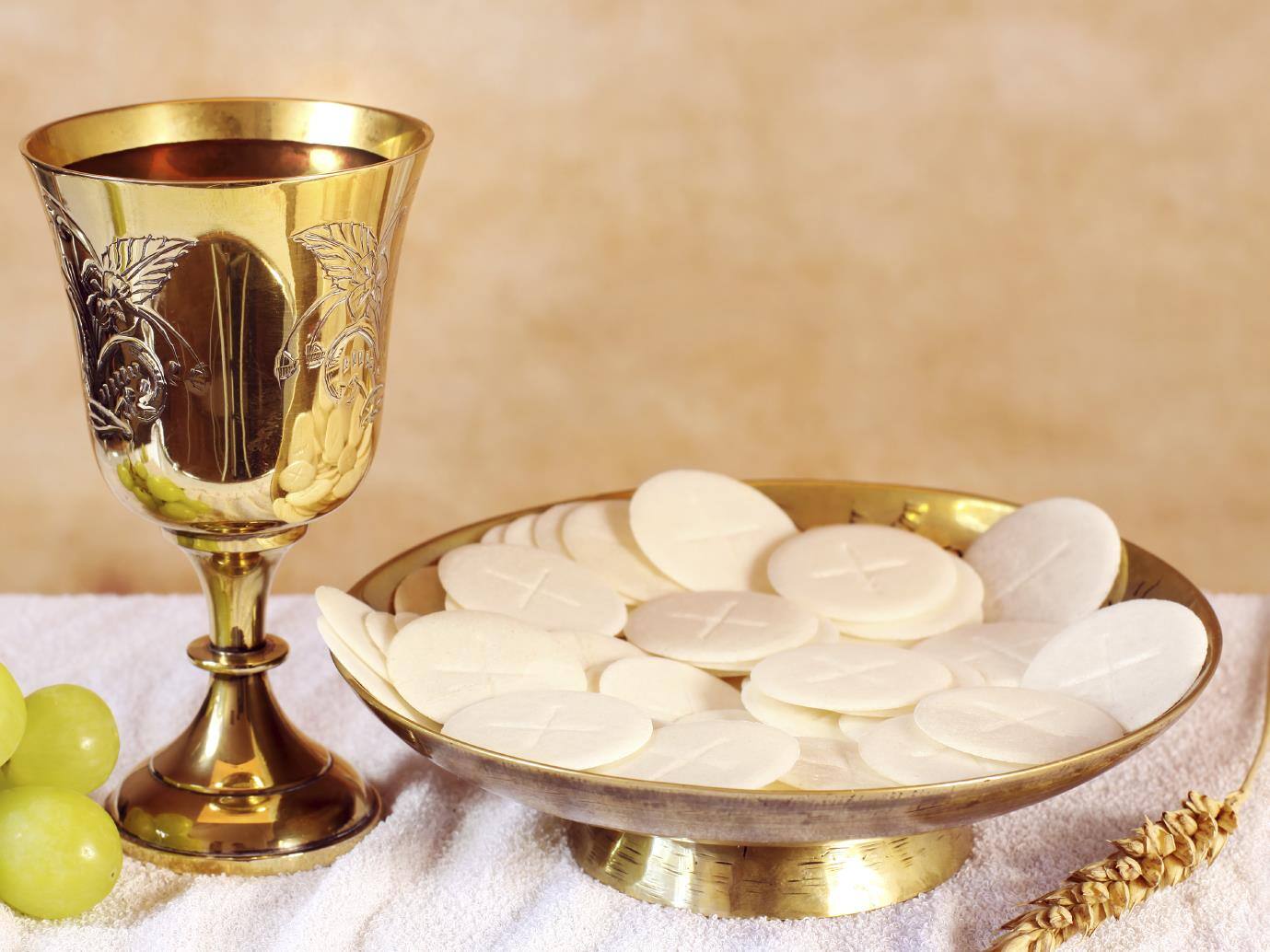 Eucharistie "je oběť Těla a Krve Pána Ježíše, kterou Ježíš ustanovil, aby pro všechny časy, dokud znovu nepřijde, zachoval v trvání oběť kříže a své církvi tak zanechal památku na svou smrt a na své zmrtvýchvstání. Je znamením jednoty, poutem lásky a velikonoční hostinou, v níž je požíván Kristus, duše se naplňuje milostí a dává se nám záruka věčného života." (Kompendium KKC 271)