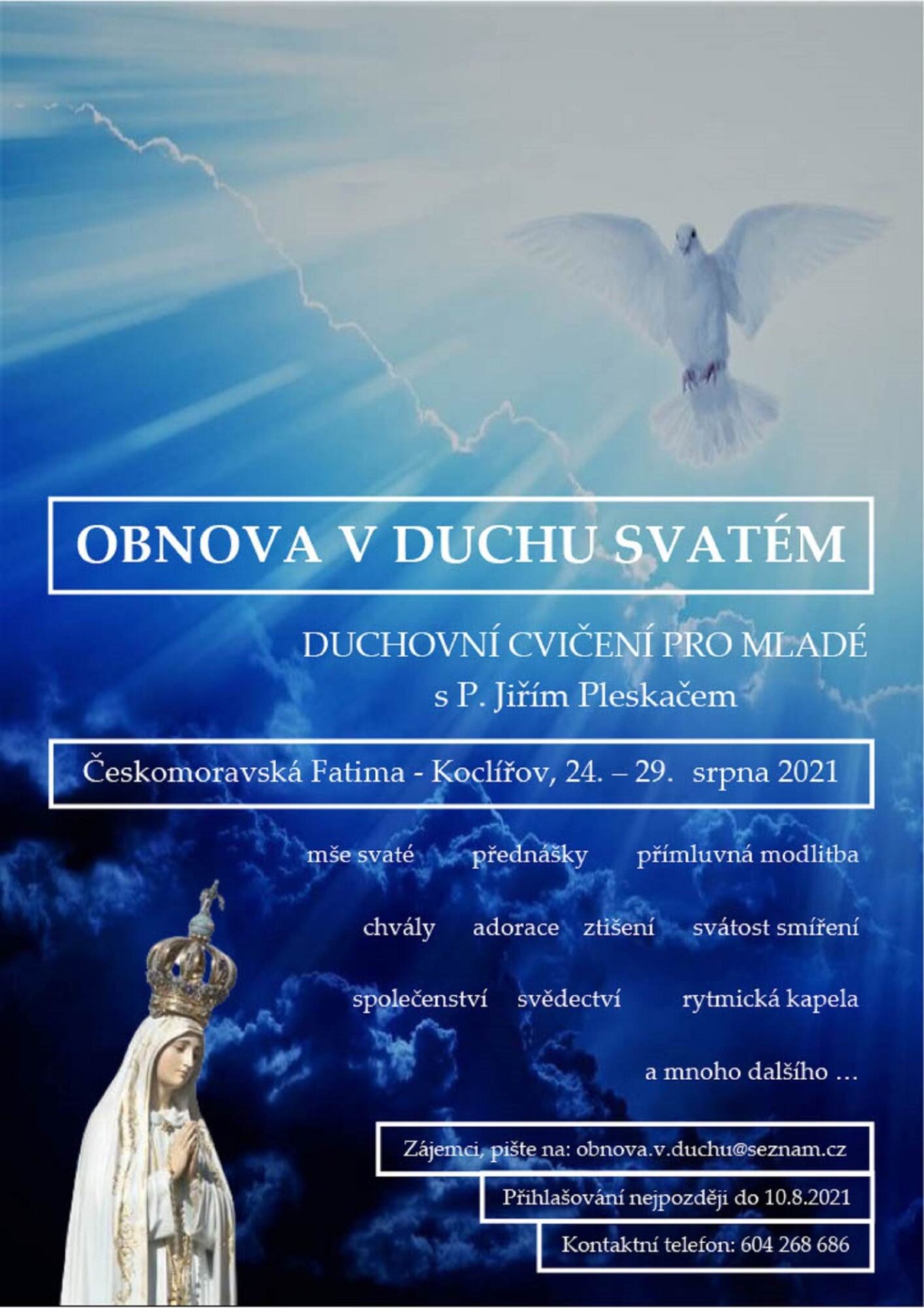 Sdílíme akci Obnova v Duchu Svatém, která se bude konat na poutním místě v Koclířově u Svitav od 24. 8. do 29. 8. 2021. Duchovní obnovu povede P. Jiří Pleskač, kněz řeckokatolického obřadu.